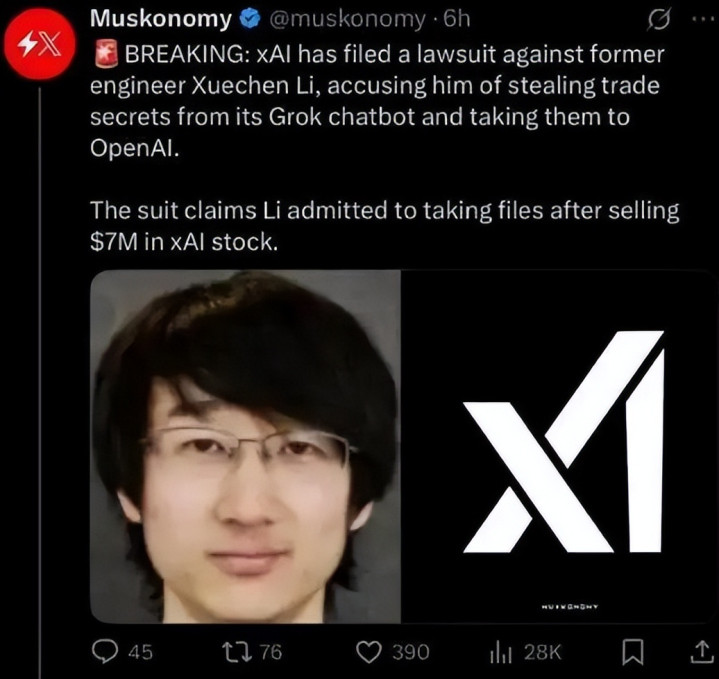 这还不是最让xAi震怒的,最让他们震怒的是,当他们想去讨个说法的时候,竟还骇怪的发现,李雪晨果然加入了身为马斯克讨厌公司的OpenAI,以致还极有可能将那些窃取来的玄机文献共享给了OpenAI,帮他们省下了不下数亿好意思元的研发用度。